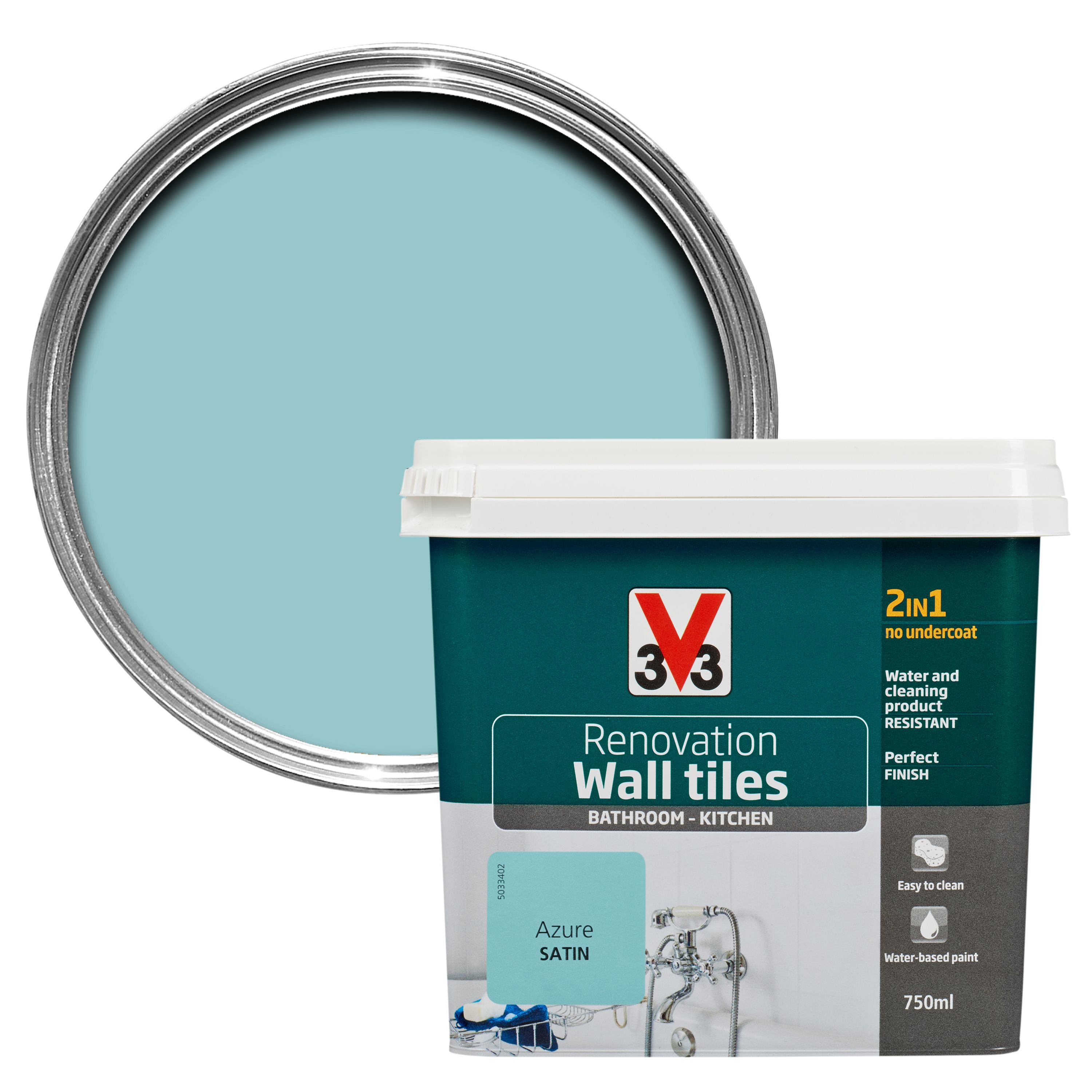 V33 Renovation Azure Satin Wall Tile Paint 0 75l Diy At B Q